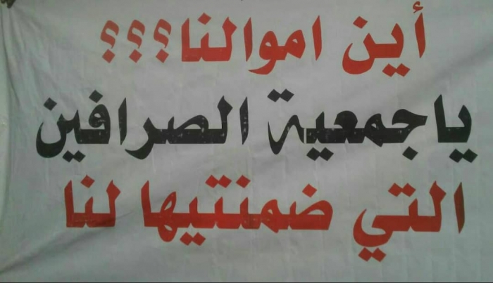 واستنكر المحتجون تجاهل الجمعية ومديرها المدير التنفيذي أحمد العودي، مطالب الصرافين لأكثر من 4 أشهر.