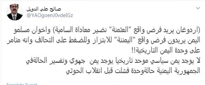 الدويل: الإخوان يُحاولون فرض اليمننة على غرار عثمنة أردوغان