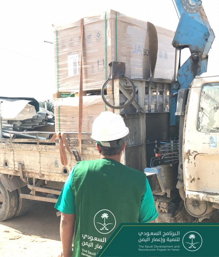 بالتزامن، أطلق البرنامج السعودي مشروع تركيب ألواح طاقة شمسية، لضخ مياه الآبار الجوفية، بمديرية الحزم، مؤكدا أن توظيف تكنولوجيا الطاقة الشمسية في المشروعات التنموية بالجوف أحد أهداف التنمية المستدامة.
