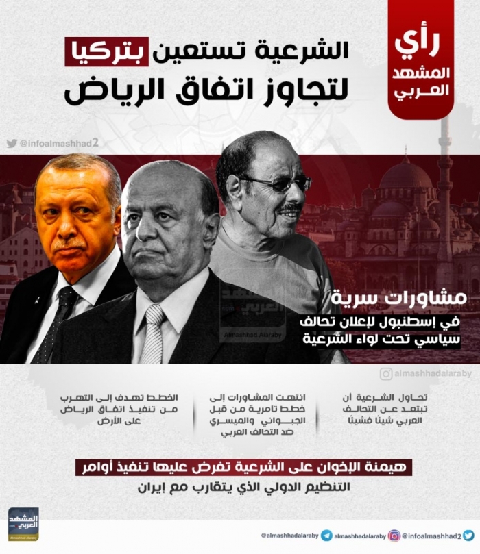 وتبنت حكومة الشرعية، مسارا بديلا عن دول التحالف العربي، بالتوجه إلى تركيا، استجابة لأوامر التنظيم الدولي للإخوان.
