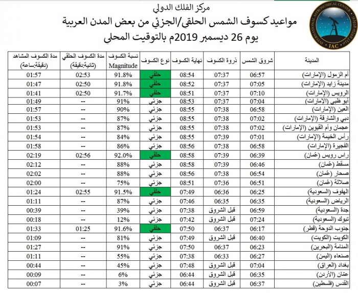 تشهد أجزاء من منطقة الخليج وشمال شرقي أفريقيا غداً الخميس، ظاهرة فلكية نادرة تعرف باسم "حلقة النار".