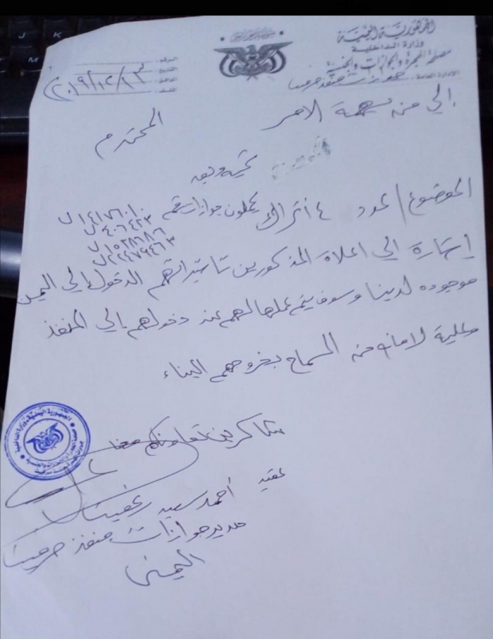 وقال في تغريدة عبر "تويتر" رصدها "المشهد العربي": "وثيقة تكشف دخول أربعة عناصر من الاستخبارات التركية عبر منفذ صرفيت اليمني. لم يعد خافيا على أحد تنامي الدور التركي في اليمن بتسهيل غير محدود من الشرعية اليمنية الخاضعة لنفوذ إخوان اليمن. يبدو أننا على أعتاب تطورات جديدة في المشهد اليمني".