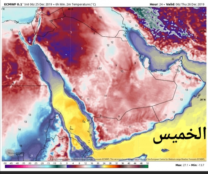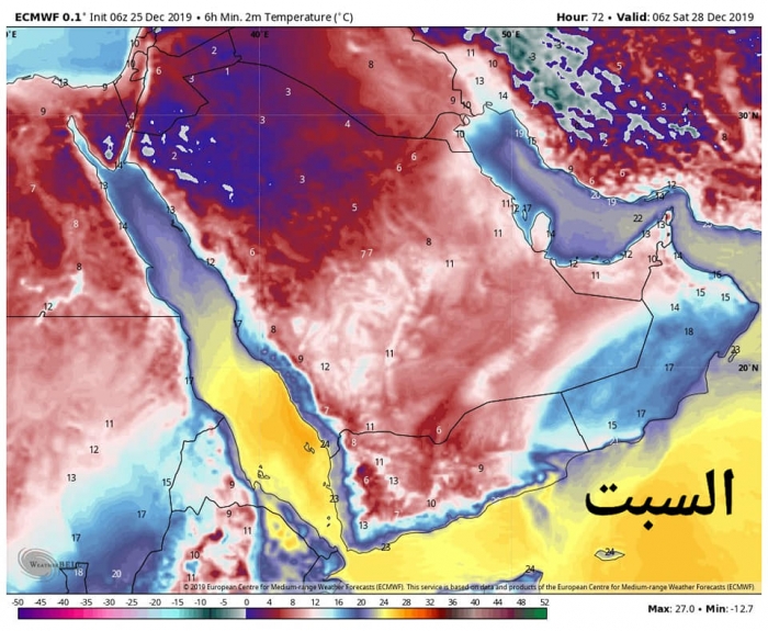 توقعت جهات الطقس، استمرار موجة البرد حتى السبت القادم على محافظات حضرموت وشبوة والمهرة، مشيرة إلى أن درجات الحرارة ستكون بأقل من 10 درجات مئوية.