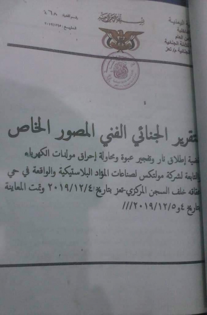 وكشفت عن اعتدائه، بمعية عصابته المسلحة، على مصنع موتيكس للبلاستيك ومحاولة إحراقه بإطلاق النار وإلقاء قنبلة يدوية على المولد الكهربائي الخاص بالمصنع.