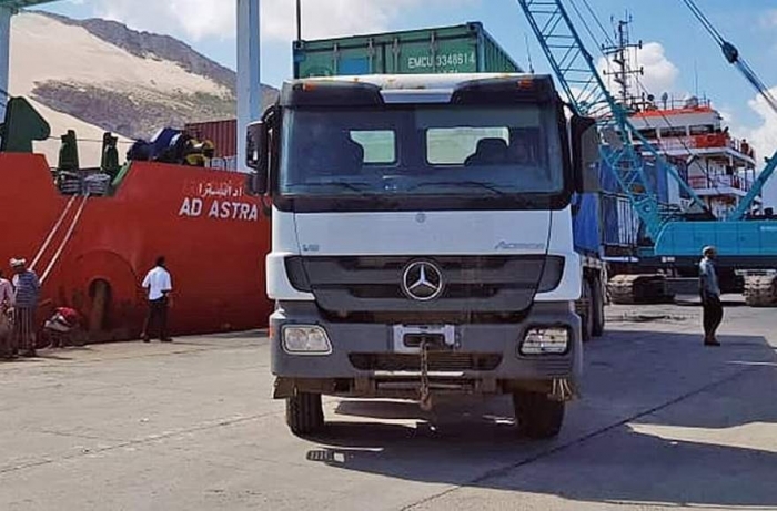 وصلت إلى ميناء حولاف بسقطرى، سفينة مساعدات إنسانية مقدمة من دولة الإمارات العربية المتحدة.