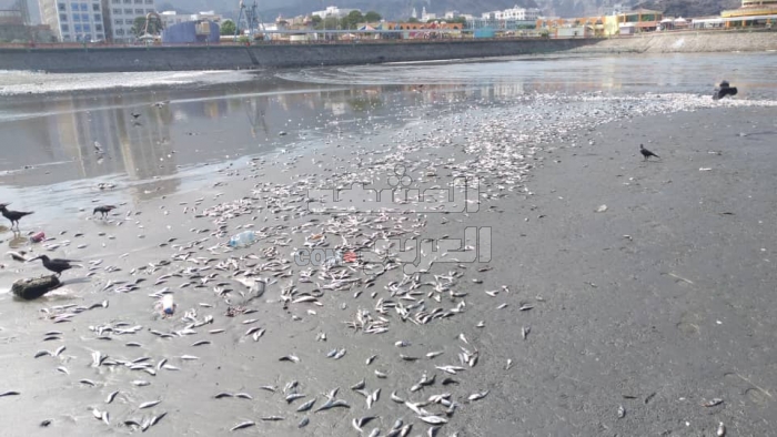 طفت أطنان من الأسماك النافقة، صباح اليوم الجمعة، على سواحل خور مكسر وصيرة بالعاصمة عدن.
