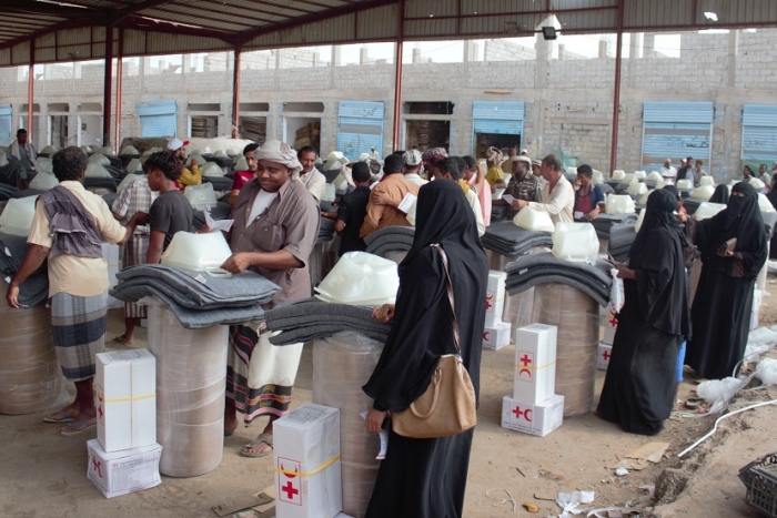 دعم الاتحاد الدولي لجمعيات الصليب والهلال الأحمر اليوم الأربعاء، 500 أسرة مستضيفة ونازحة في لحج بمواد إيوائية.