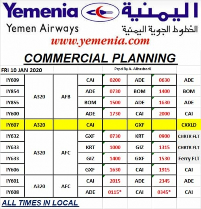 الإقلاع: 07:30 صباحا بتوقيت عدن