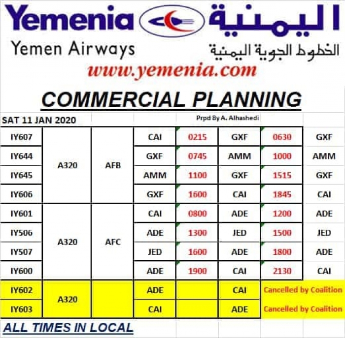 تطلق شركة طيران اليمنية، غدا السبت، 8 رحلات جوية إلى عدة وجهات كالأتي: