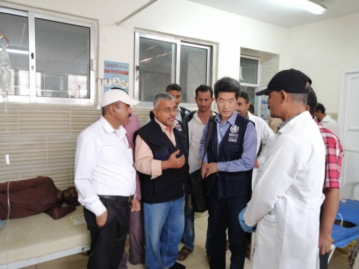 تفقد وفد من منظمة الصحة العالمية، صباح اليوم الأحد، مستشفى ردفان العام، لتقييم قسم علاج حالات الاشتباه بالإصابة بالكوليرا.