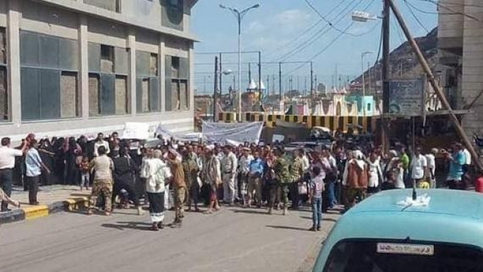 وانطلق المعلمون المحتجون، في مسيرة، من ساحة البنوك في الشارع الرئيسي بكريتر، إلى بوابة قصر معاشيق، حيث مقر إقامة حكومة الشرعية.
