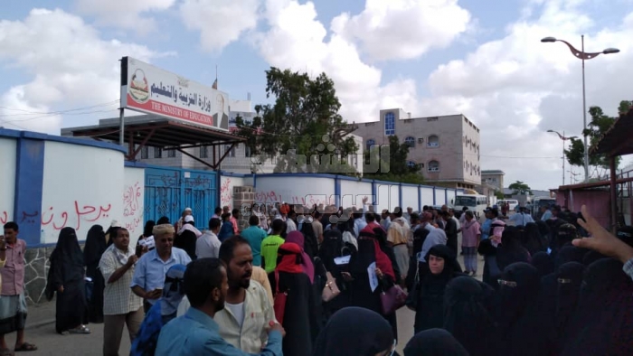 شارك المئات من المعلمين والتربويين، بالعاصمة عدن، اليوم الأحد، في وقفة احتجاجية، أمام بوابة ديوان وزارة التربية والتعليم في مدينة الشعب للمطالبة بتحسين أوضاعهم المعيشية.