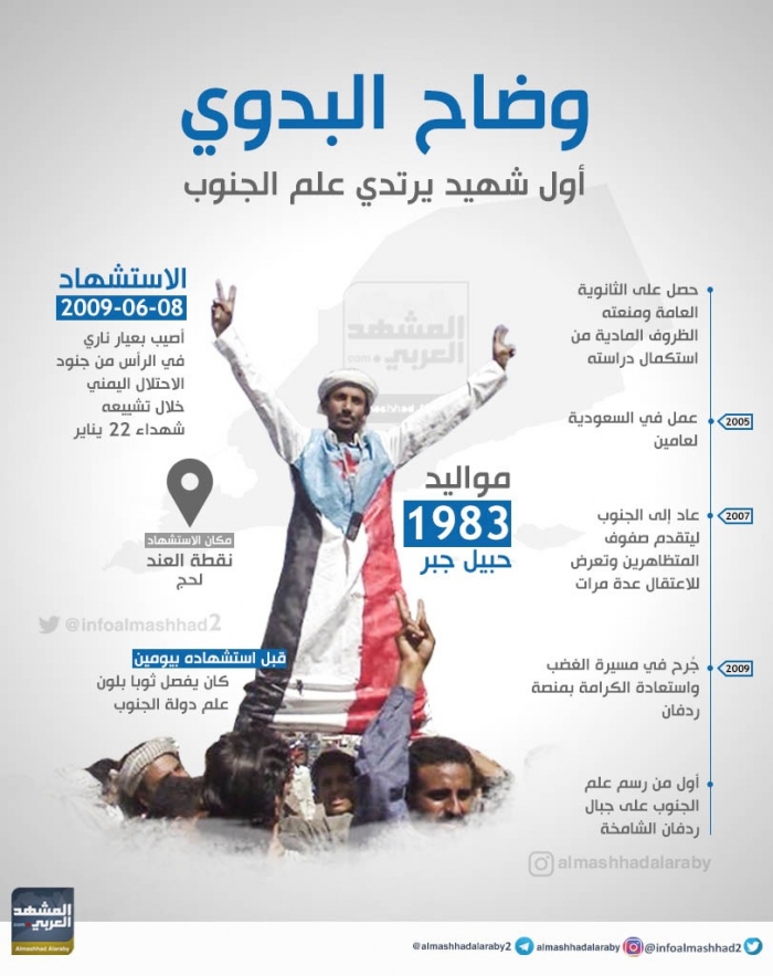 وضاح البدوي.. أول شهيد يرتدي علم الجنوب (انفوجراف)
