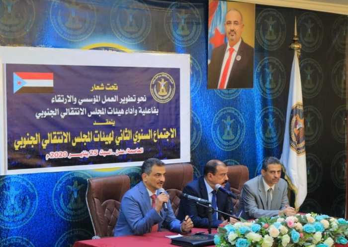 وجرى انعقاد الاجتماع الثاني تحت شعار "نحو تطوير العمل المؤسسي والارتقاء بفاعلية وأداء هيئات المجلس الانتقالي الجنوبي".
