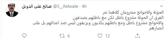 الدويل: الحوثة والإخوان مشروعان كلاهما شر