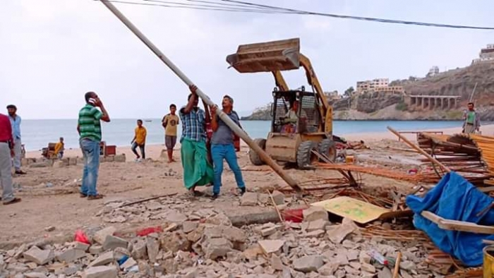 شهدت مديرية التواهي صباح اليوم الأربعاء، حملة موسعة لإزالة الأبنية العشوائية في المنطقة المقابلة لشاطئ جولدمور السياحي.