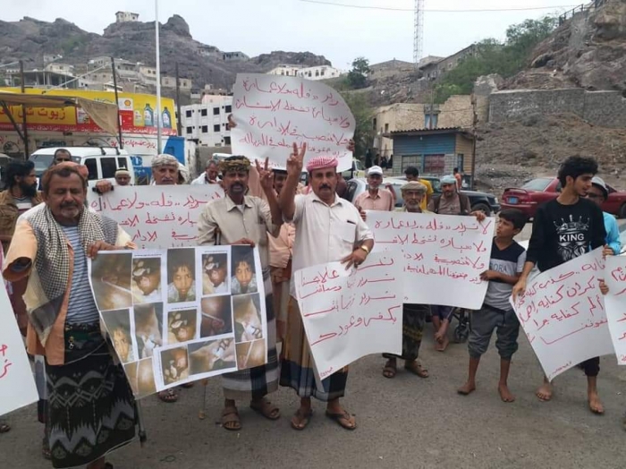 طالب العشرات من جرحى عدوان مليشيا الحوثي الإرهابية، المدعومة من إيران، على العاصمة عدن، اليوم الأحد، خلال وقفة احتجاجية، أمام قصر المعاشيق، باستكمال علاجهم وصرف مستحقاتهم المالية.