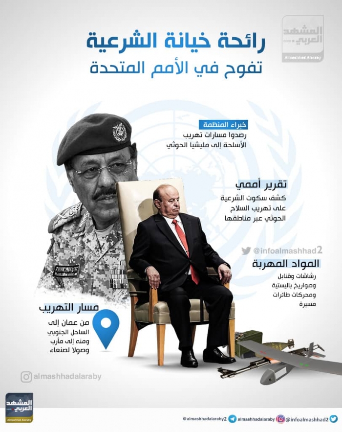 "الانفوجرافيك" التالي يسلط الضوء على التقرير الأممي الذي كشف عن تورط حكومة الشرعية في تهريب السلاح الحوثي عبر مناطقها.