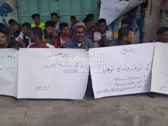 ودعا المحتجون، الجهات المعنية في محافظة أبين، بتغيير مدير مكتب الشباب والرياضة في المحافظة، وتعيين شخصية بديلة تعمل على انتشال الوضع الرياضي.
