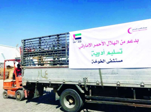 سلمت هيئة الهلال الأحمر الإماراتي، مؤخراً، مستشفى الخوخة، الواقع في مديرية الخوخة على الساحل الغربي لليمن، شحنة من المستلزمات الطبية والأدوية، إضافة إلى توفير طاقم طبي مدرب على التعامل مع الحالات الحرجة، في استمرار لجهودها الدؤوبة لدعم القطاع الطبي في اليمن الشقيق، حيث وصلت قيمة مساعدات الإمارات لقطاع الصحة في اليمن إلى 611 مليوناً و300 ألف درهم، خلال عامين ونصف العام في الفترة من أبريل 2015 حتى نوفمبر 2017.