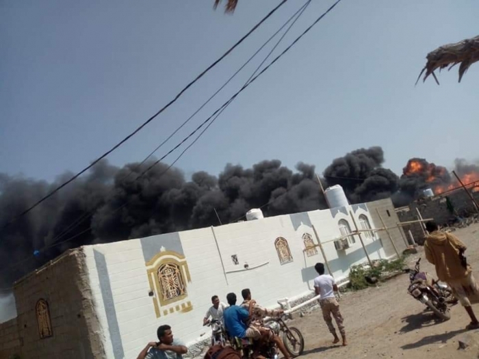 نشب حريق هائل اليوم السبت، داخل أحد المعسكرات في مديرية المخا بالساحل الغربي.