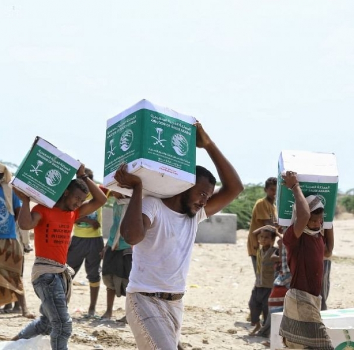 مساعدات غذائية وإيوائية من السعودية للنازحين بأبين (صور)