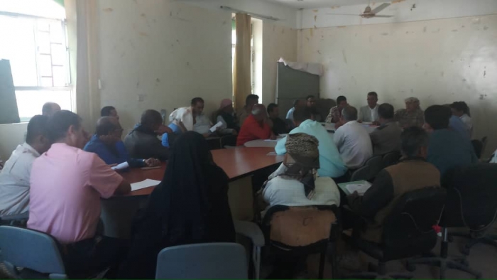 وبحث الاجتماع الذي ضم المكتب التنفيذي والهيئة الإدارية للمجلس المحلي و قيادات المجلس الانتقالي الجنوبي بالضالع مجمل الأوضاع الأمنية بالمحافظة إلى جانب مناقشة الأوضاع الإدارية والمالية ومشروعات المياه وأوضاع صندوق النظافة والتحسين والوقوف أمام عملية الانضباط الوظيفي والخدمات .