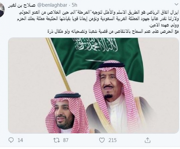 أكد الإعلامي صلاح بن لغبر، اليوم، أن اتفاق الرياض لا يزال الطريق الأمثل للخلاص من مليشيات الحوثي.