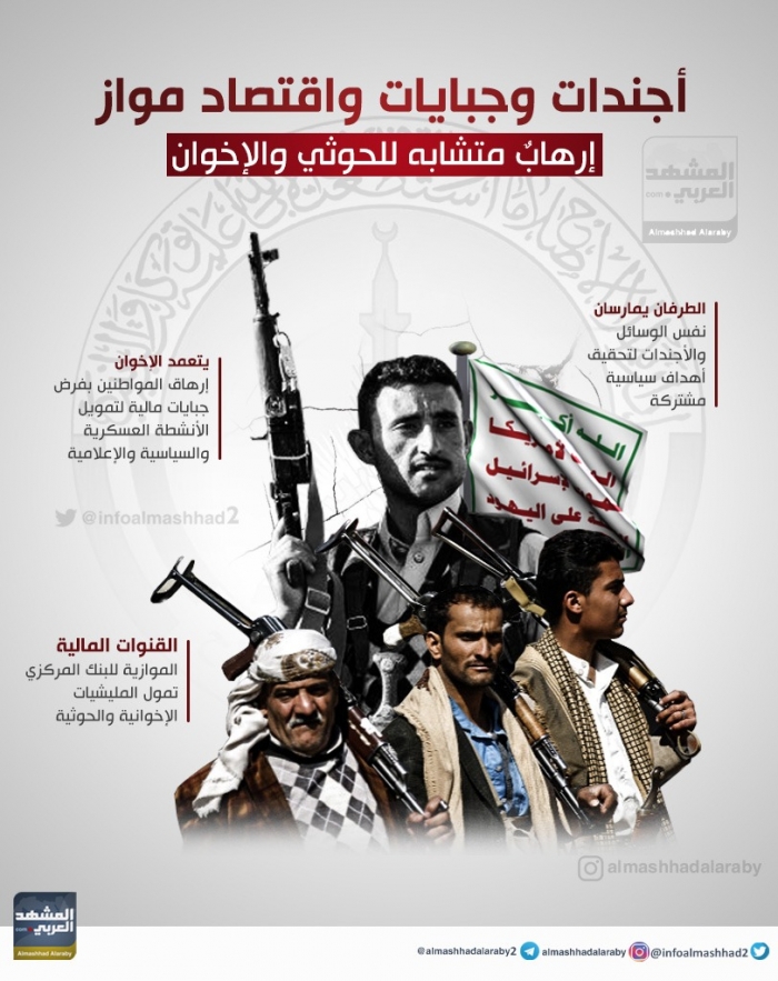 أجندات وجبايات واقتصاد مواز..إرهاب متشابه للحوثي والإخوان (انفوجرافيك)