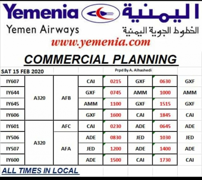 تنطلق غدا السبت، 8 رحلات لطيران اليمنية، من مطاري العاصمة عدن الدولي وسيئون إلى عمان والقاهرة وجدة.