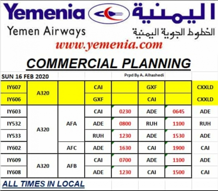 تنطلق، غدا الأحد، ست رحلات جوية - عبر مطار العاصمة عدن - لطيران اليمنية، إلى القاهرة والرياض.