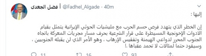 الجعدي مُحذرًا الشرعية: حرف مسار المعركة لن يقبله الجنوبيين