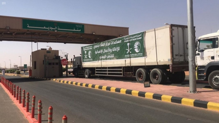 12 شاحنة إغاثة سعودية تعبر منفذ الوديعة