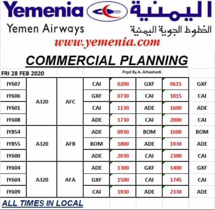 تنطلق غدا الجمعة، تسع رحلات جوية لطيران اليمنية، من مطاري العاصمة عدن وسيئون، إلى القاهرة ومومباي.