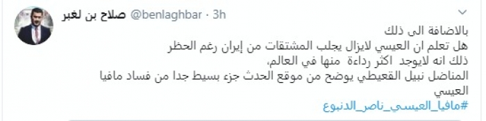بن لغبر: العيسي لا يزال يجلب المشتقات من إيران