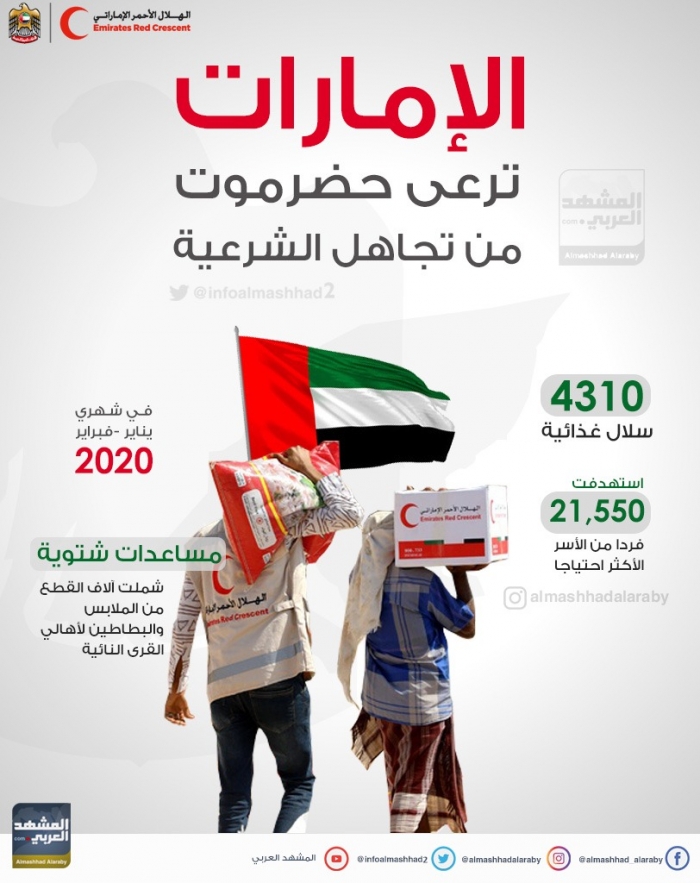 تواصل دولة الإمارات العربية المتحدة، رعاية أهالي حضرموت، بمختلف أشكال المساعدات الإنسانية، في ظل تجاهل حكومة الشرعية الاحتياجات الأساسية للمواطنين بالمحافظة.