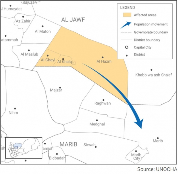 أعلن مكتب الأمم المتحدة للشؤون الإنسانية، أوتشا، تنسيق الجهود مع شركائه في المجال الإنساني لتوفير المساعدات للنازحين من الجوف ومأرب.