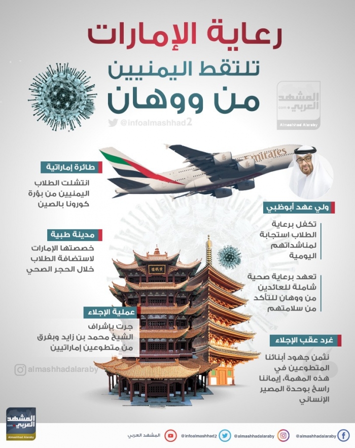 نقلتهم سريعا.. الإمارات تُنقذ اليمنيين العالقين بووهان من خطر كورونا (إنفوجراف)