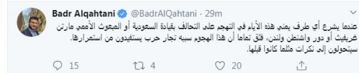 القحطاني: تجار الحروب هم من يهاجمون التحالف.. وسيتحولون إلى نكرات