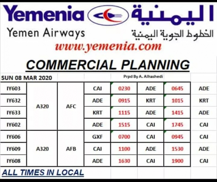 تنطلق غدا الأحد، سبع رحلات جوية لطيران اليمنية، من وإلى القاهرة والخرطوم.