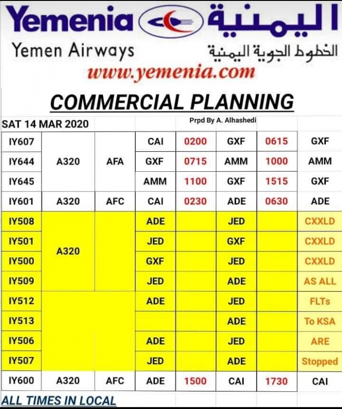 تنطلق 5 رحلات لطيران اليمنية، غدا السبت، من مطاري العاصمة عدن الدولي وسيئون، إلى عمان والقاهرة.