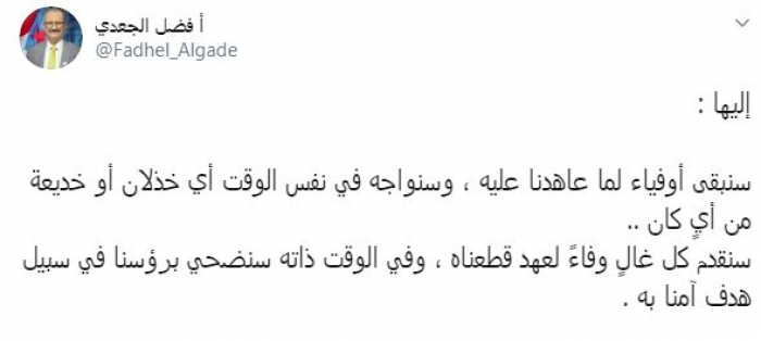 الجعدي: سنبقى أوفياء لما عاهدنا عليه.. وسنواجه أي خذلان