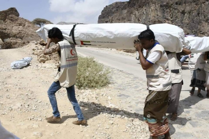 وزعت هيئة الهلال الأحمر الإماراتي، اليوم الأحد، مساعدات إيوائية على عدد من المناطق الريفية في مديرية الريدة وقصيعر بمحافظة حضرموت.