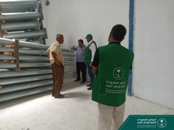 فحص فريق من البرنامج السعودي للتنمية والإعمار، اليوم الخميس، المواصفات الفنية لمصنع أعمدة الإنارة، المرتقب تركيبها في العاصمة عدن.