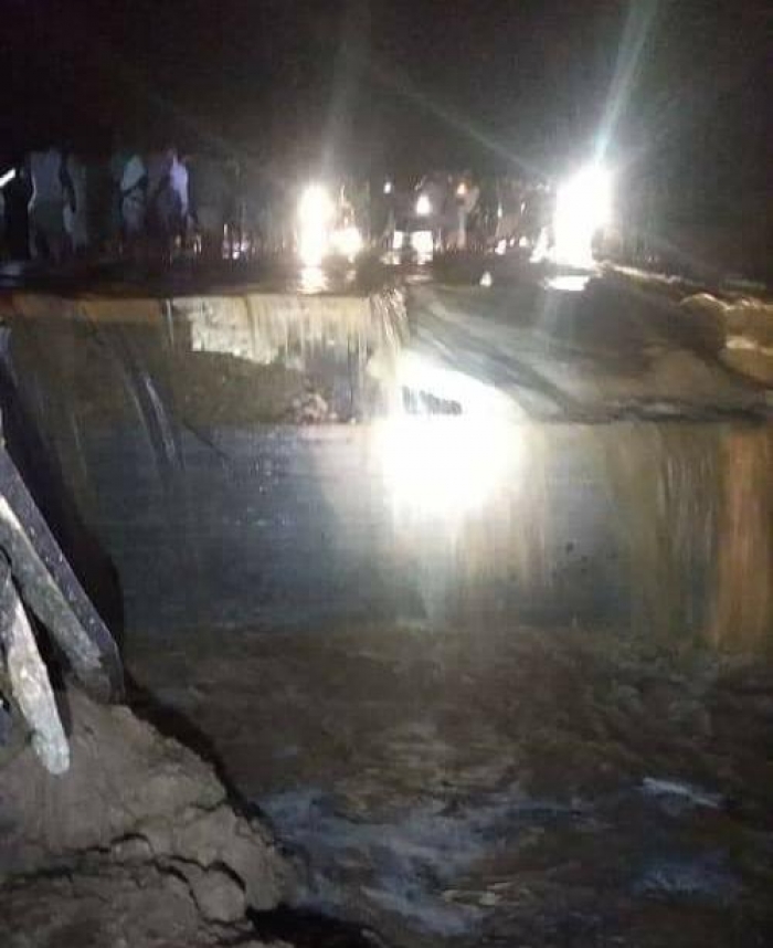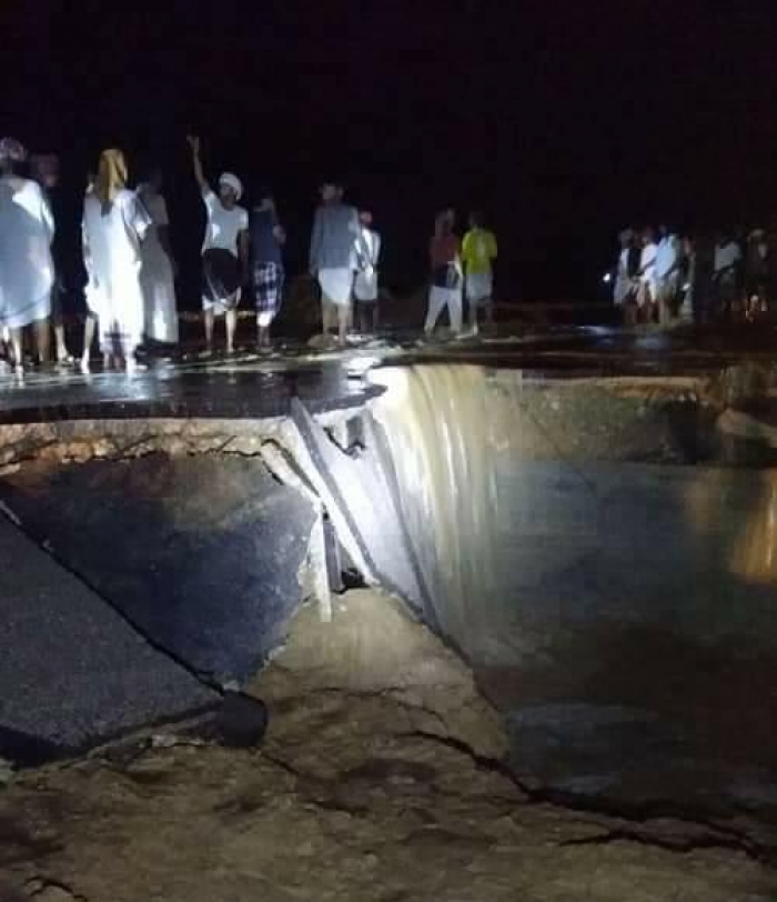 وتسببت مياه السيول الغزيرة القادمة من منطقة عصم، بجرف الجسور الأرضية في مديرية السوم شرقي حضرموت.