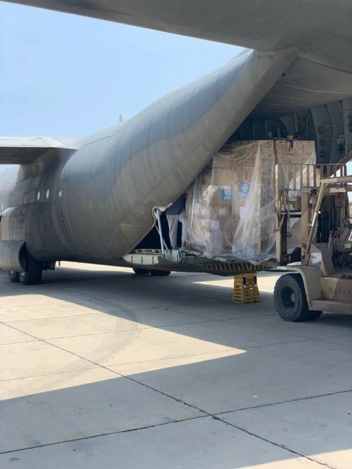 استقبل مطار العاصمة عدن الدولي، صباح اليوم الاثنين، طائرة نقل تابعة للقوات الجوية الملكية السعودية، تحمل على متنها إمدادات طبية للوقاية من فيروس كورونا المستجد (COVID-19).