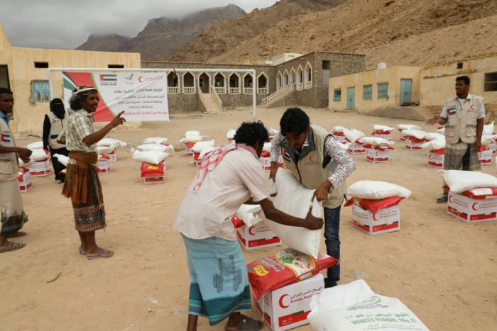 سلمت هيئة الهلال الأحمر الإماراتي، اليوم الاثنين، مساعدات غذائية للأسر الأكثر احتياجا في مديرية غيل باوزير، بمحافظة حضرموت.