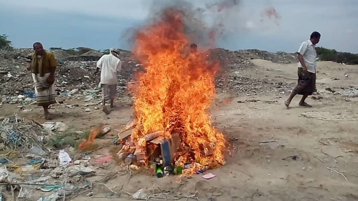 ونفذت فرق البيئة، عملية الإتلاف، بعد ثبوت انتهاء تاريخ الصلاحية المحدد للمواد المضبوطة، في مقلب النفايات بوادي حسان شرق مديرية زنجبار.