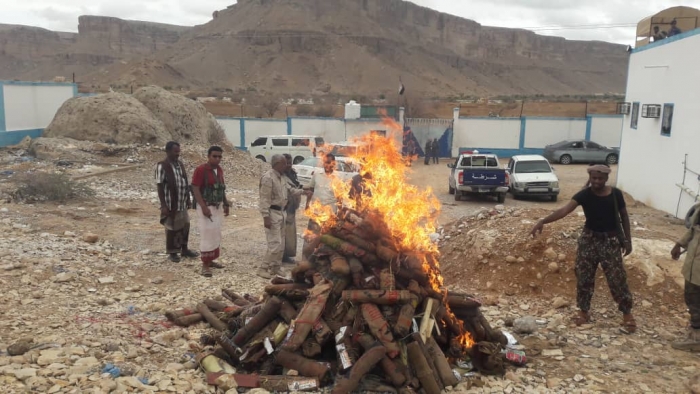 أتلفت إدارة أمن دوعن، اليوم الأربعاء، ألف و320 بندل قات، صادرتها عبر المداخل والأسواق في المديرية.