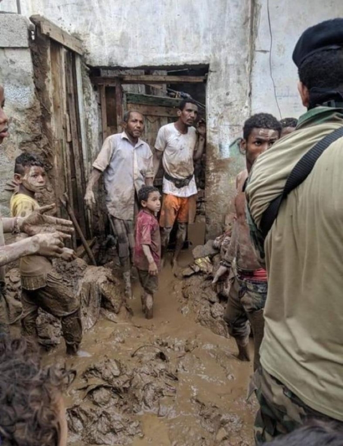 ونشر على حسابه في موقع تويتر، اليوم الأربعاء، صورة مأساوية لكفاح الأهالي في عدن، في صد تدفق السيول على بيوتهم الهشة، قائلا: "لوحة تعبيرية عن حال عدن اليوم".